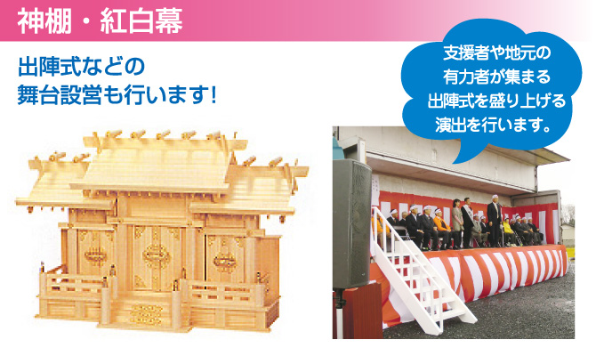 紅白幕まで、選挙には欠かせないグッズを幅広く取り揃えました。